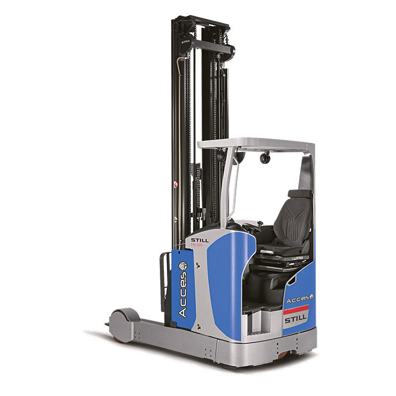Le chariot à mât rétractable permet de manipuler des charges, la plupart du temps, dans les entrepôts à rayonnages élevés au sein d’allées étroites. Leur faible encombrement ainsi que la capacité de leur mât à se rétracter à l’intérieur des bras de fourches est un avantage incontestable pour élever des charges dans les espaces les plus restreints, là où les chariots frontaux ne peuvent opérer, tout en offrant une capacité de levage importante.